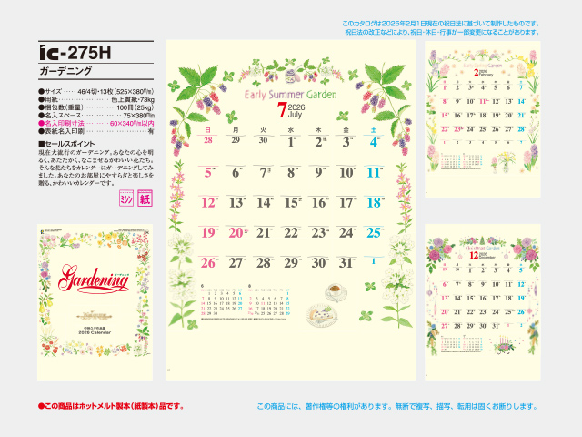 - ガーデニング 壁掛けカレンダー【IC-275】