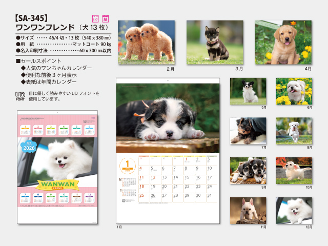 - ワンワンフレンド 壁掛けカレンダー【SA-345】
