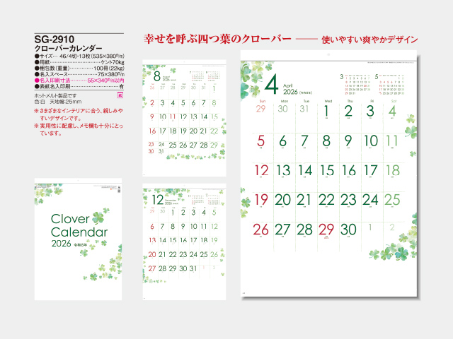 クローバーカレンダー 壁掛けカレンダー【SG-2910】