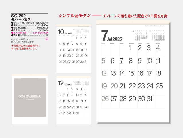 モノトーン文字 壁掛けカレンダー【SG-292】